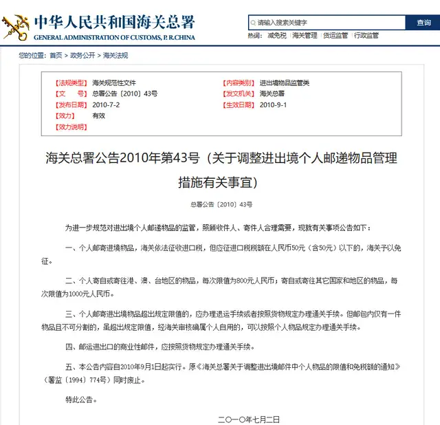 海關(guān)總署的這項新政策放寬了個人物品郵寄的限值,便利了跨境購物